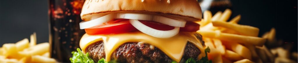 110 grs de carne + muzzarella + roquefort + jamón + aros de cebolla + pan de papa.