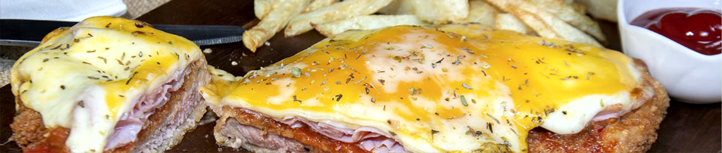 Milanesa de carne o Suprema + muzzarella + cheddar + bacon crujiente + verdeo.