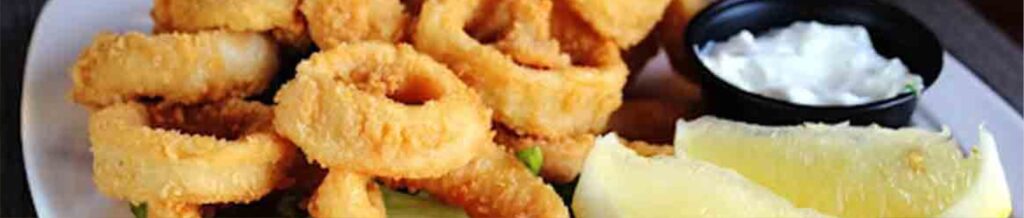 Langostinos rebozados + cornalitos + rabas + mejillones a la provenzal + bastones de merluza + papas fritas.